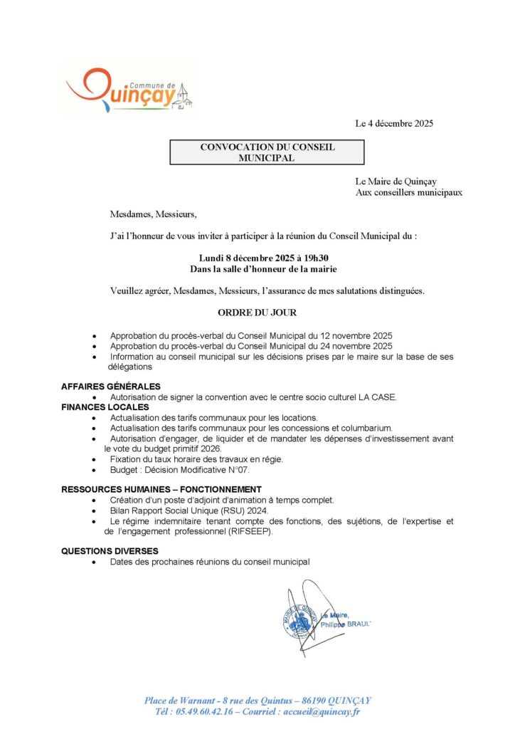 Conseil Municipal Accueil / News / Le Conseil Municipal se tiendra en mairie le lundi 8 décembre à 19h30